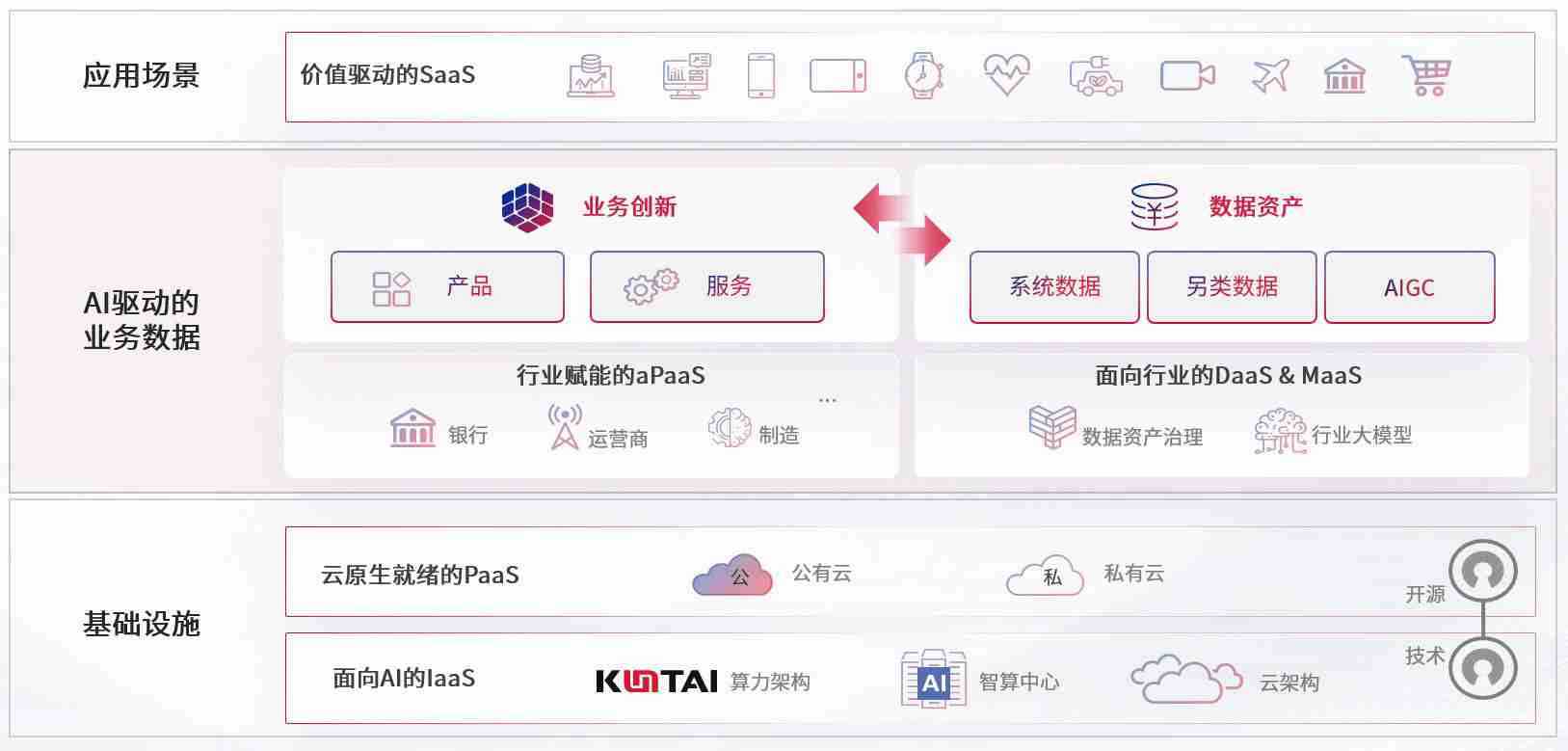 数字时代,,围绕企业数字化转型的关键要素,,,z6com尊龙凯时数码开创性的提出数云融合战略和技术体系框架,,着力在云原生、、、数字原生、、、、AI原生和信创产业上架构产品和服务能力,,,为处在不同数字化转型阶段的快消零售、、、、汽车、、金融、、、、医疗、、、、政企、、、教育、、、、运营商等行业客户提供泛在的敏捷IT能力和融合的数据驱动能力,,,,构建跨界融合创新的数字业务场景和新业务模式,,,助力企业级客户建立面向未来的核心能力和竞争优势,,,全面推动社会的数字化、、智能化转型升级。。